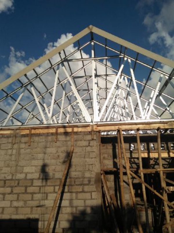 -pasang atap baru di rangka kanopi besi